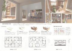 現代の民主社会では、男女の差別や親から子供へといった序列はもはや存在しない。家族のメンバーは自立した個人として存在している。そこでは小さな子供たちでさえ自立した個人として認められるだろう。現代の複合家族は、自立する個人の緩やかな集合体となるだろう。世代が異なれば生活様式も異なるから、家族のメンバーが住む空間の質も異なるだろう。世代の異なる家族と、家族のそれぞれのメンバーが互いに認め合い、支え合って生活できるフレキシブルな住宅。将来にはシェアハウスにも転用されるかもしれない可能性のある住宅。そのような意外性をはらんだ「世代をつなぐ家」の多様な可能性の提案を期待したのである。