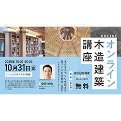 | 概要 | 受け継いできた森を伐採し拠点施設整備の柱・梁に活かすと同時に、次の世代のために新たな森を育て始めた公共施設整備をご紹介します。木の建築だからこそ果たせる、地域の将来のための大切な役割について考えます。 WEB会議システムZoomを活用したオンライン開催のため、インターネットに接続できる環境であればどこからでも受講が可能です。また講義内には、講師陣に直接ご質問いただける質疑応答の時間も設けられます。 全3回の講座は、いずれか1回からお申込みいただけます。興味のあるテーマやご都合に合わせてご参加ください。 |
