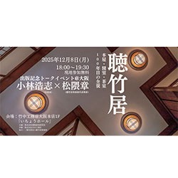| 概要 | 竣工当時の姿に甦った「聴竹居」の全貌を写真家の小林浩志氏が撮影し一冊の書籍にまとめた『聴竹居ー本屋・閑室・茶室 100年目の全貌』が2025年6月に発売となりました。この出版を記念して、2025年12月8日(月)、竹中工務店大阪本店(大阪市中央区)にて、小林浩志氏と同書の監修を務めた松隈章氏によるトークイベントを開催いたします。 |