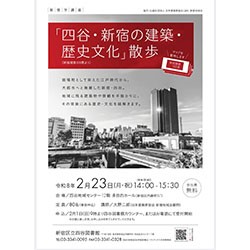 | 概要 | 宿場町として栄えた江戸時代から、大都市へと発展した新宿・四谷。地域に残る建築物や景観を手掛かりに、「新宿建築100景」を活用し、背後にある歴史・文化を紐解く講座です。 |