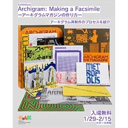 | 概要 | 今年春に開催された「Archizines Fair 2025」で映像出展された『Archigram: The Magazine』。その出版社D.A.P. and Designers & Booksとニューヨークのクーパー・ユニオン(The Cooper Union)が昨年10月に共同開催した展覧会「Archigram: Making a Facsimile」 を、日本で唯一、けんちくセンターCoAKにて開催いたします。 |