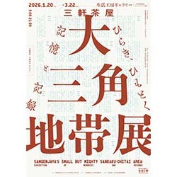 | 概要 | 世田谷区三軒茶屋にある通称・三角地帯。世田谷通りと玉川通りに挟まれ、細い路地が縦横に入り組むこのエリアには、戦後ヤミ市に端を発するさまざまな世代の店舗が共存しています。 本展は三角地帯をテーマにした来場者参加型の展覧会です。三角地帯のみならず、文化的につながる周辺や関係をふくめた「大三角地帯」として記憶と記録を集めていきます。路地裏のように入り組んだ会場で展示を構成するのは、この地にまつわるあらゆる事象をキーワードで集積した「大三角地帯事典」や、来場者が撮影した写真を会場内にマッピングする「29年後のファウンドフォト」など。ただ、展示開始時点にはいずれも〝完成〟しておらず、会期中の毎週末に実施予定の、各種スタディツアーやワークショップを通して記録された絵や写真、言葉によって更新されていきます。 会場から歩いて60秒の場所にある本物の三角地帯を含め、大三角地帯にまつわる〈語られなかった記憶〉と〈ひらかれなかった記録〉——それらをひもといていくことで、これまでも、これからも営まれていく「生活」のかたちと引き継ぎ方について考えてみましょう。 |