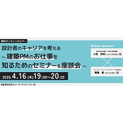 | 概要 | 建築・建設業界で活躍する皆様のキャリアを支援する株式会社クリーク・アンド・リバー社では、2026年4月16日(木)19:00~、設計者の皆様に将来の様々なキャリアの可能性を考えていただくための無料オンラインセミナー「設計者のキャリアを考える~建築PMのお仕事を知るためのセミナー&座談会~」を開催します。 |