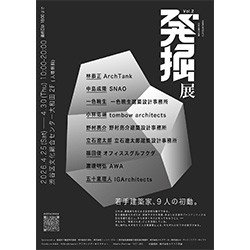 | 出展者(敬称略) | 五十嵐理人(IGArchitects)、一色暁生(一色晚生建築設計事務所)、小林佑輔(tombow architects)、立石遼太郎(立石遼太郎生築設計事務所)、中島成隆(SNAO)、野村亮介(野村亮介建築設計事務所)、林恭正(ArchTank)、福田俊(OFFICESUGURUFUKUDA)、渡邊明弘(渡邉明弘建築設計事務所) |