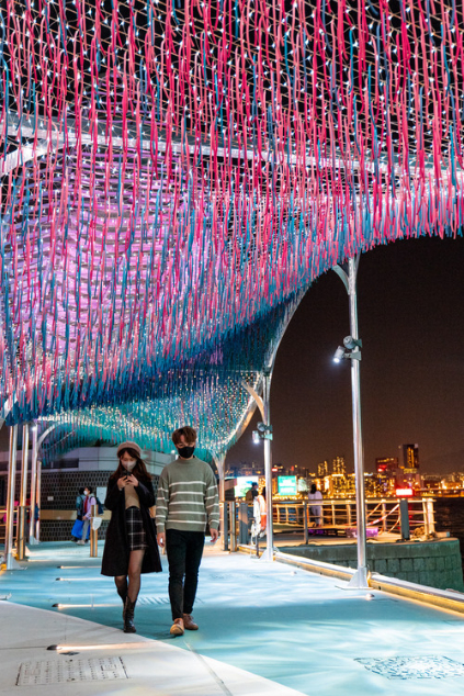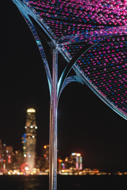 At night, the ever-changing lighting design encourages visitors to immerse in a surreal tapestry of colour and motion that provides a brief respite from the intense city life.