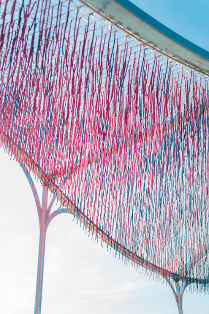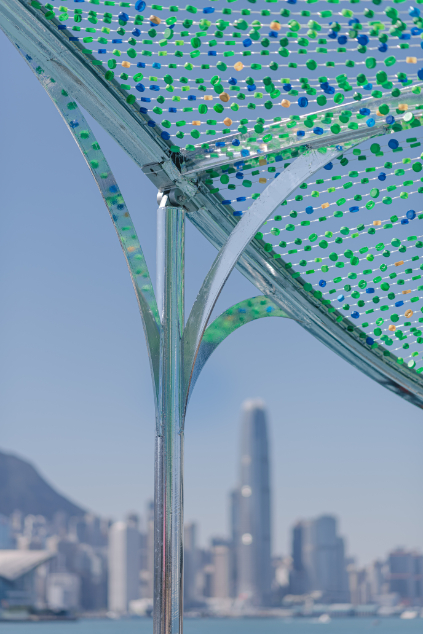 「Harbour Wave 1.0」の屋根は、3色とりどりの万個以上のリサイクルカラーペットボトルキャップで構成されており、「Harbour Wave 2.0」では、1万5千本以上の再生プラスチック(rPET)製ロープが使用されています。