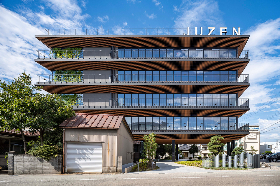 富山の自然と文化に着目し、工場群の中の憩いの場となるオフィスを目指した。