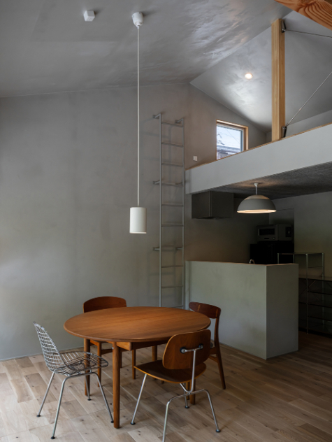 平面・断面計画は「小さな中に、大きさを包み込む」をテーマに、どうすれば小さくて大きな空間が出来るか?を課題として進めました。何回かの打合せを経て、細かく部屋を仕切る壁が少しずつ減り、全ての生活を受けとめる12坪ワンルームの計画へとかたまりました。