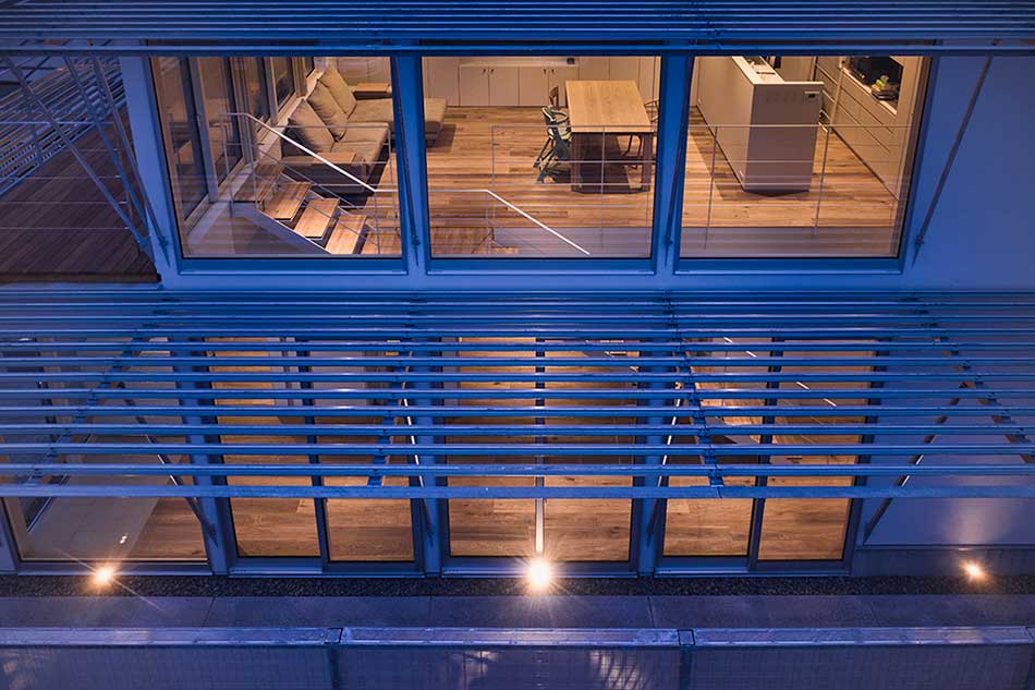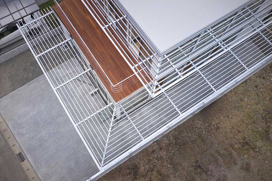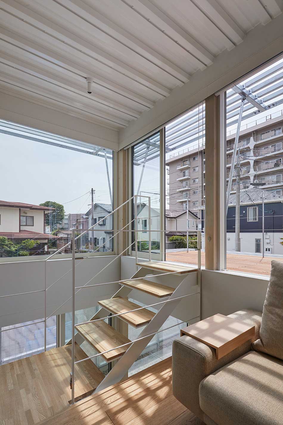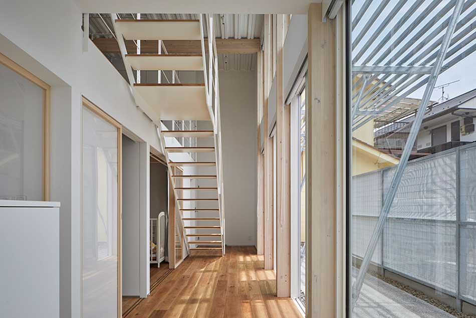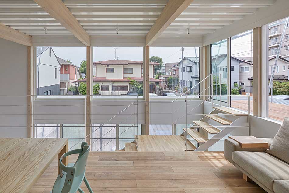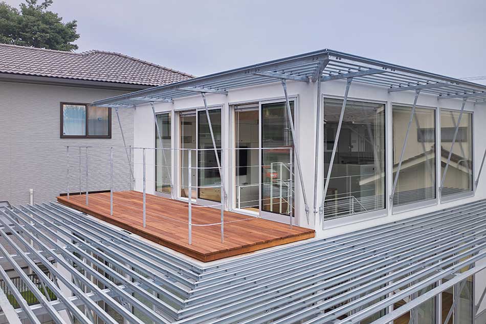 庇のような羽が周辺環境とそれぞれを繋ぐ住宅。