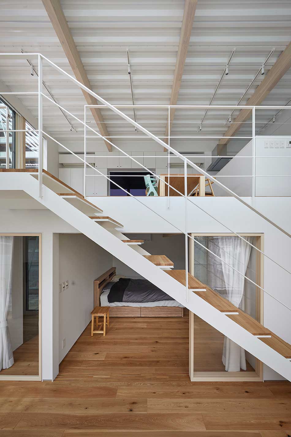 鉄骨造の軽快さと木造の柔らかさももった伸びやかな空間のプロトタイプのひとつになることを目指した。