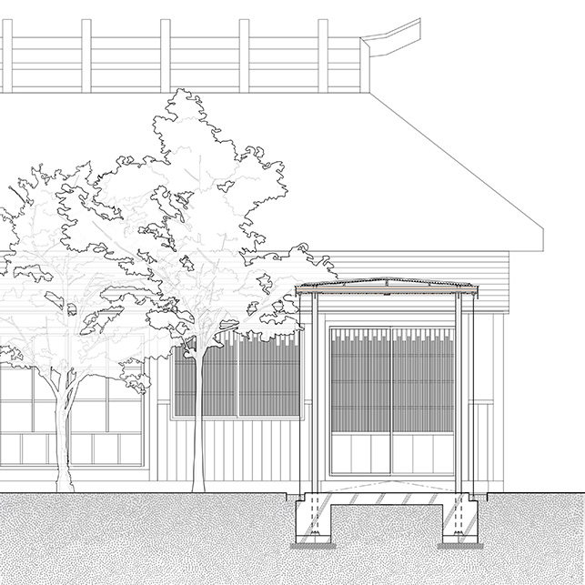 改修の対象となった建物は約150年前に建築された旧武家屋敷です。住居としての役目を終えた後は宮城県白石市の特産品である白石温麺の食事処として使用されてきました。本プロジェクトではこの旧武家屋敷の改修及び前面道路から玄関まで繋がる新ポーチの増設と前庭の計画を行いました。