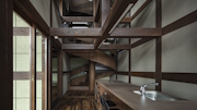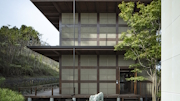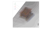 桜の名所である山梨県富士川町の大法師山。敷地はひな壇状の土地であったため、造成を最低限に抑えるために日本建築の懸造を参照した。自然を征服するのではなく、自然と一体となる思想をもった構法としての、建築を支える木組みの土台である。今回はその土台そのものを拡張させて、全体の建築になりえないかと考えた。伝統的な貫構法ではなく現代の金物構法とすることで、より抽象的な立体格子をめざした。